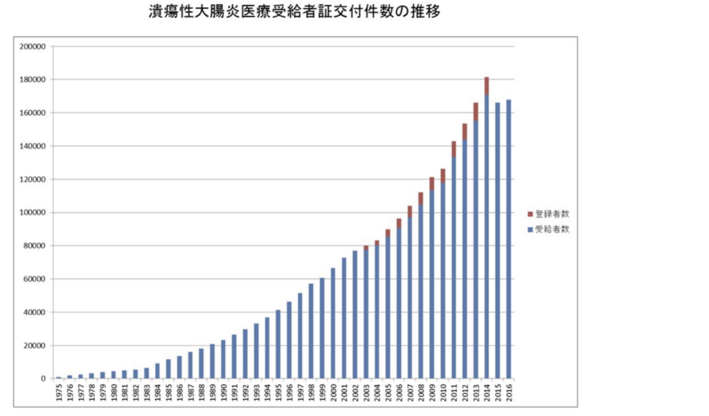 - 2023年の推計では、潰瘍性大腸炎の有病者数は約31.7万人と報告されています。